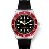 TUDOR Black Bay 41mm Black Dial & Red Bezel Men’s Rubber Strap Watch M7941A1A0RU-0002. Stainless steel 41mm case and red aluminium bezel all on a rubber strap. This men’s watch has a black dial with luminous applied hands and hour markers. Waterproof up to 200m and sapphire crystal glass. Power reserve up to 70 hours. Calibre MT5602-U METAS certified automatic movement.