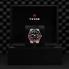 TUDOR Black Bay 58 GMT 39mm Black/Red Bezel Automatic Strap Watch M7939G1A0NRU-0002. Stainless steel 39mm case and black/burgundy anodised aluminium bezel all on a black rubber strap. This men’s watch has a black dial with rose golden and luminous applied hands and hour markers, date display at the 3 o’clock position. Sapphire crystal glass and waterproof up to 200m. Up to 65 hours power reserve. Automatic movement.