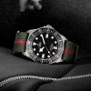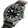 TUDOR Pelagos FXD 42mm Black Dial Titanium Men’s Automatic Watch M25717N-0001. Titanium 42mm case and black ceramic bezel all on a green & red NATO strap with accompanying black woven rubber strap. This men’s watch has a black dial with luminous applied hands and hour markers. Sapphire crystal glass and water resistant up to 200m. Power reserve up to 70 hours. Automatic movement.