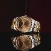 TUDOR Royal Date/Day 41mm S&G Brown Roman Dial Automatic Watch M28603-0007. Stainless steel & 18ct yellow gold 41mm case and bezel all on a matching two-tone bracelet. This men’s watch has a brown sunray dial with golden hands and hour markers, day display at the 12 and date at the 3 o’clock positions. Power reserve up to 38 hours. Sapphire crystal glass and water resistant up to 100m. Automatic movement.