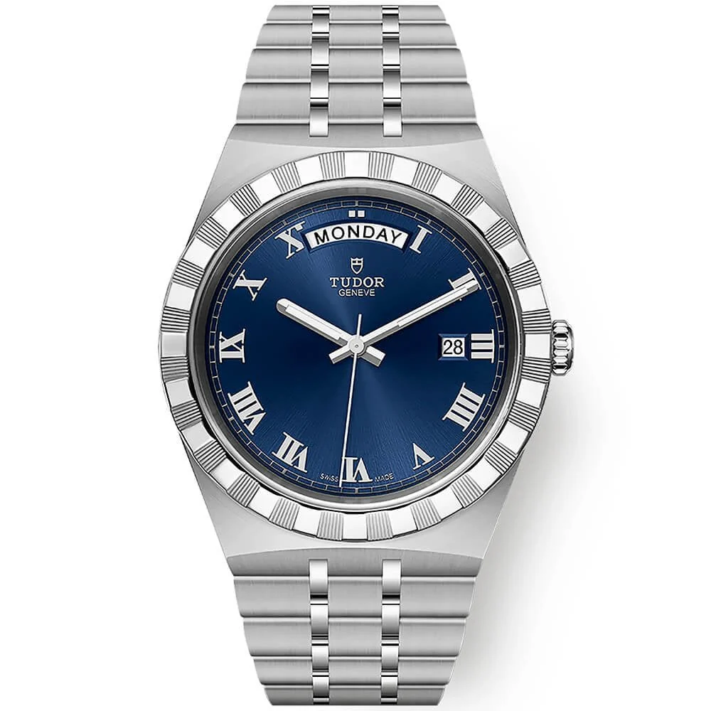 TUDOR Royal Date/Day 41mm Blue Roman Dial Men’s Automatic Watch M28600-0005. Housed in a strong, durable stainless steel case that measures a compact 41mm diameter, this men’s Tudor Royal watch Features a useful date window in an arc shape in white at 12 o’clock. To accompany this feature, the dial is also equipped with a date aperture […]