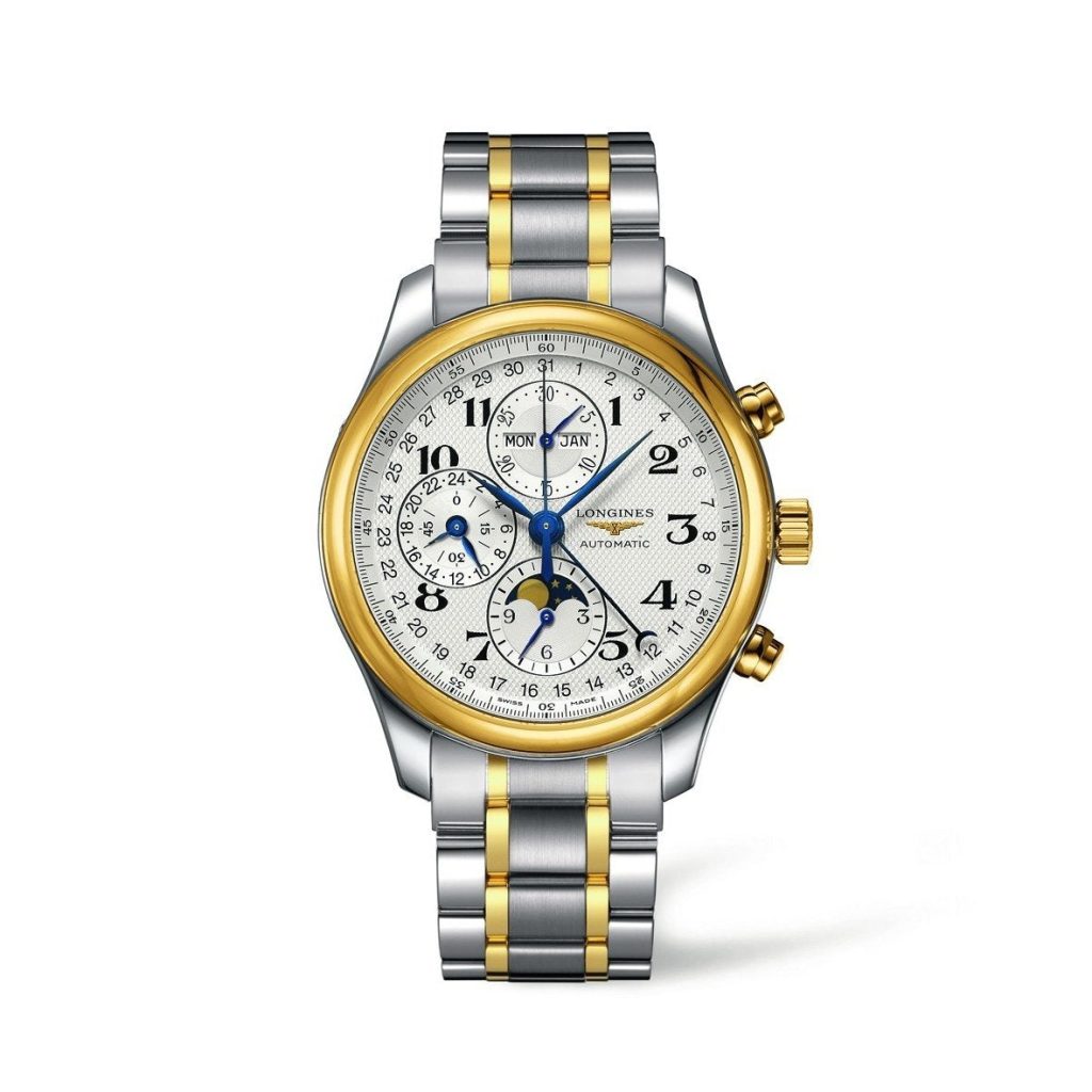 two-tone stainless steel Bracelet. stainless steel case. 18kt yellow gold bezel. silver dial with Blue hands and Black Arabic numerals hour markers. 18kt yellow gold chronograph moonphase automatic. automatic movement. sapphire crystal. 42mmx 42mmx 16mm case. 22mm band width. 30 meters water resistant. L27735787 Brand Longines Gender Male Model L27735787 Series Master Movement Automatic Water […]