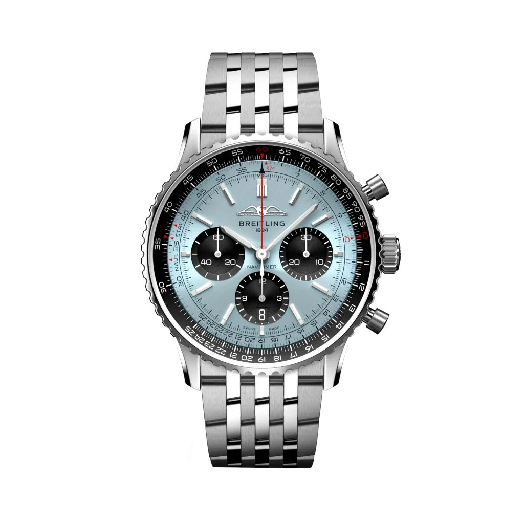 Breitling ab0138241c1a1 Navitimer Chronograph Automatic Specifications: Case Dimensions 43 mm Case Material Polished steel Dial Color Blue Crystal Sapphire Bezel Polished steel Screw in crown Screw-locked Water Resistance 30 m. Clasp Folding Clasp Band Material Polished steel Color/Finish Movement Automatic Complications None Our Packaging We promise to deliver the goods to you 100%!