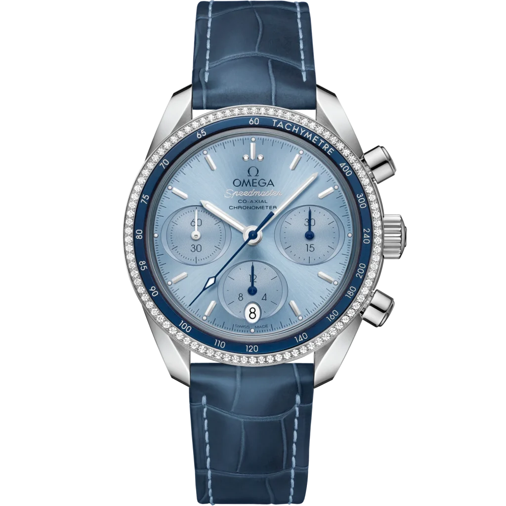 Omega Speedmaster 38 Blue Dial 38mm with Diamonds Stainless Steel Strap 324.38.38.50.03.001