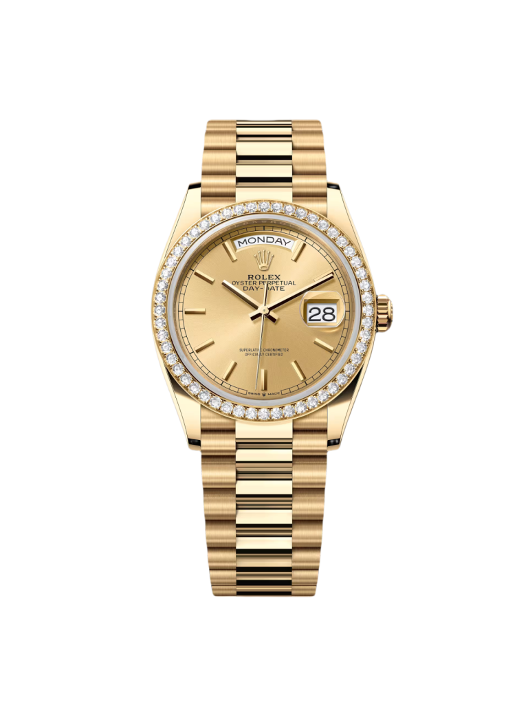 Rolex Day-Date 40mm Champaign Dial and Diamond Bezel Yellow Gold President Bracelet 228348RBR-0008