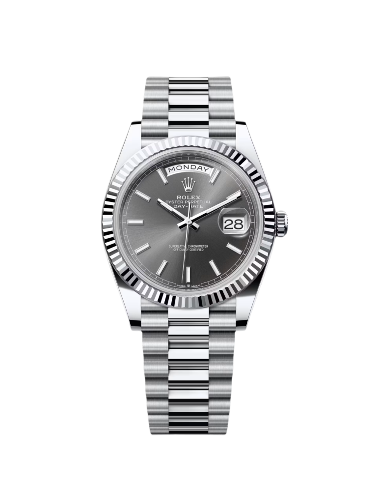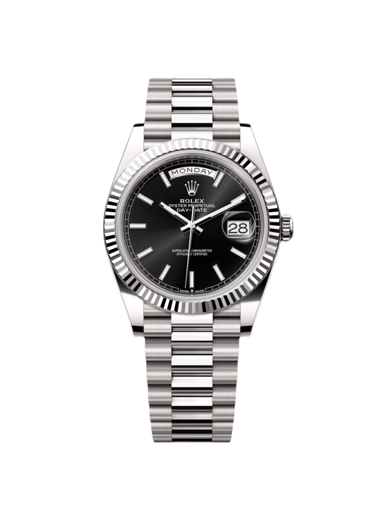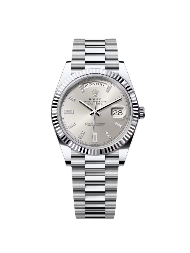 Rolex Day-Date “President” 40mm White Gold Meteorite Diamond Baguette Dial – 228239