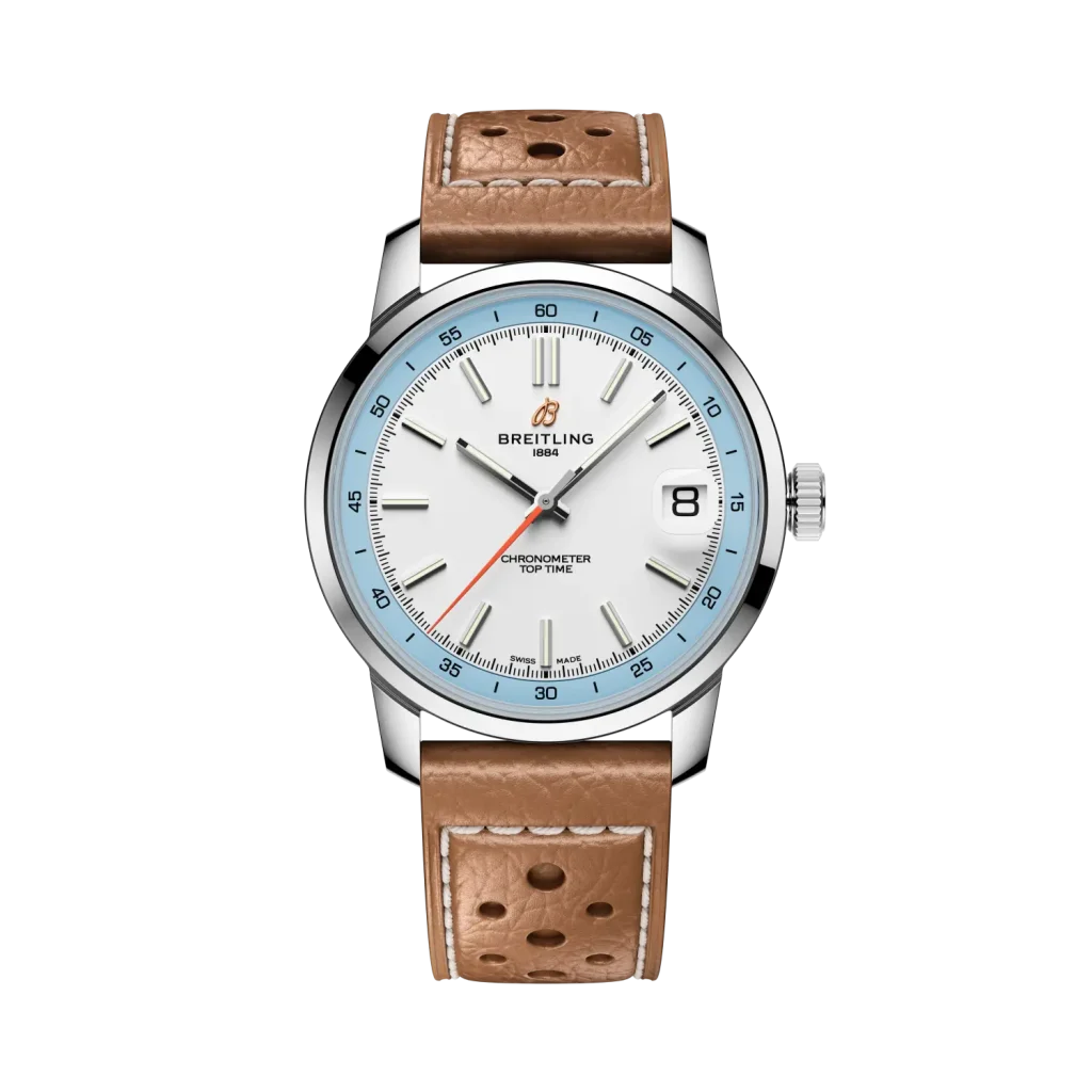 MOVEMENT Caliber: Breitling 17 Movement: Self-winding mechanical Power reserve: Approx. 38 hrs Vibration: 28,800 v.p.h Jewel: 26 jewels CASE Case material: Bronze Caseback: Screwed in Water resistance: 300 m (1,000 ft) Bezel: Unidirectional, ratcheted Crown: Screw-locked, two gaskets Crystal: Cambered sapphire, glareproofed both sides DIMENSIONS Product Weight (Approx.): 139.4 g. Watch-head Weight (Approx.): 88.5 g. […]